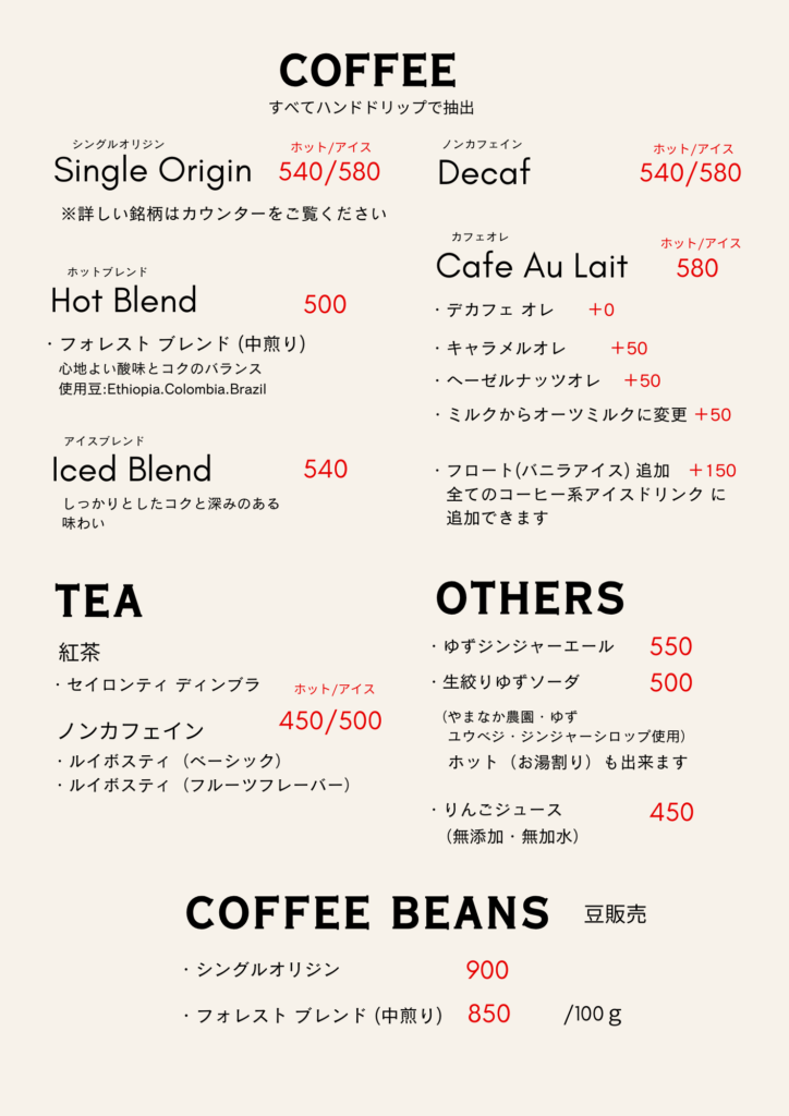 ドリンクメニュー